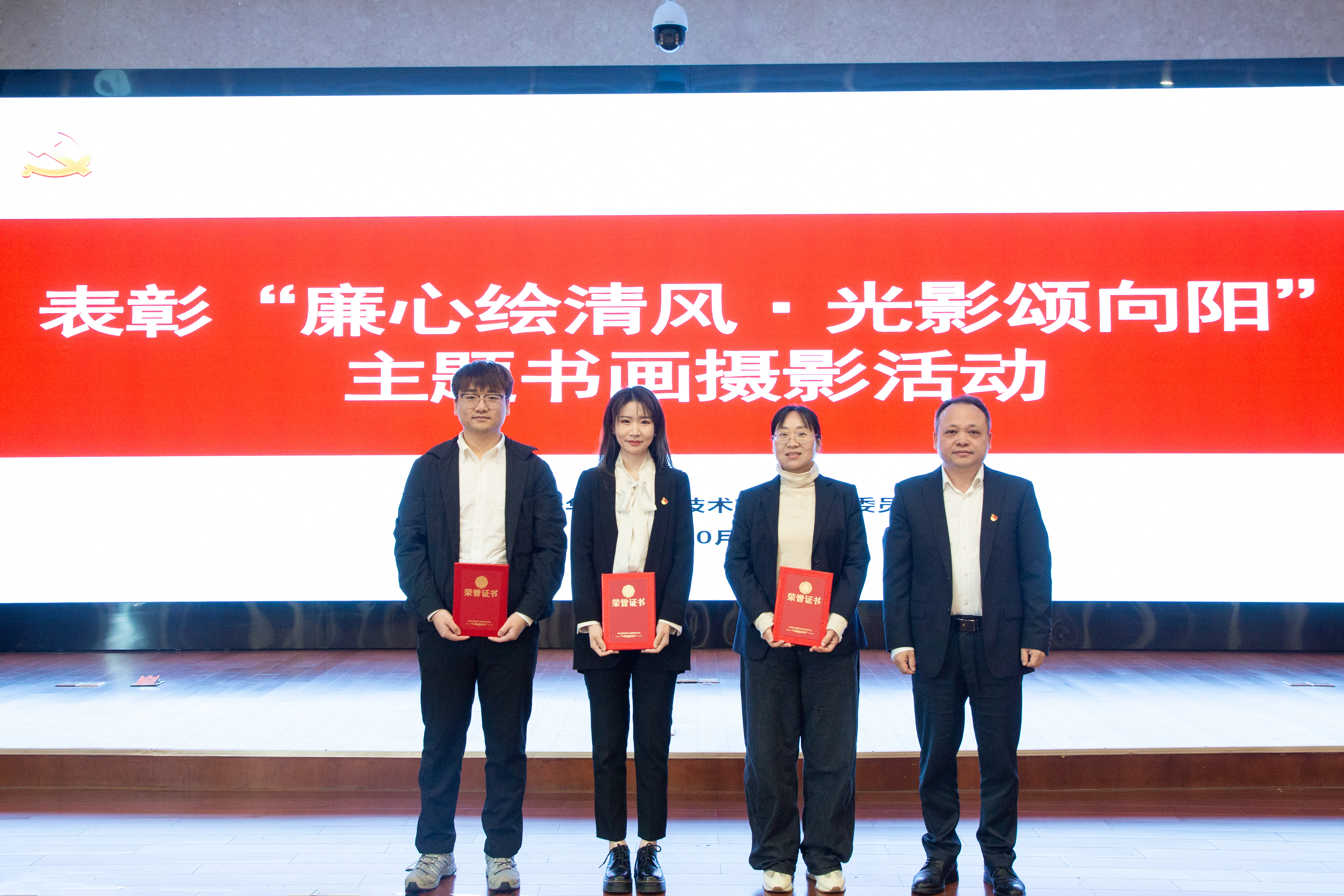 会上公布了“廉心(xīn)绘清风(fēng)·光影(yǐng)颂向阳”主题书(shū)画摄影比(bǐ)赛表彰决定,并(bìng)为(wéi)各单位获奖代表颁(bān)发奖项。
