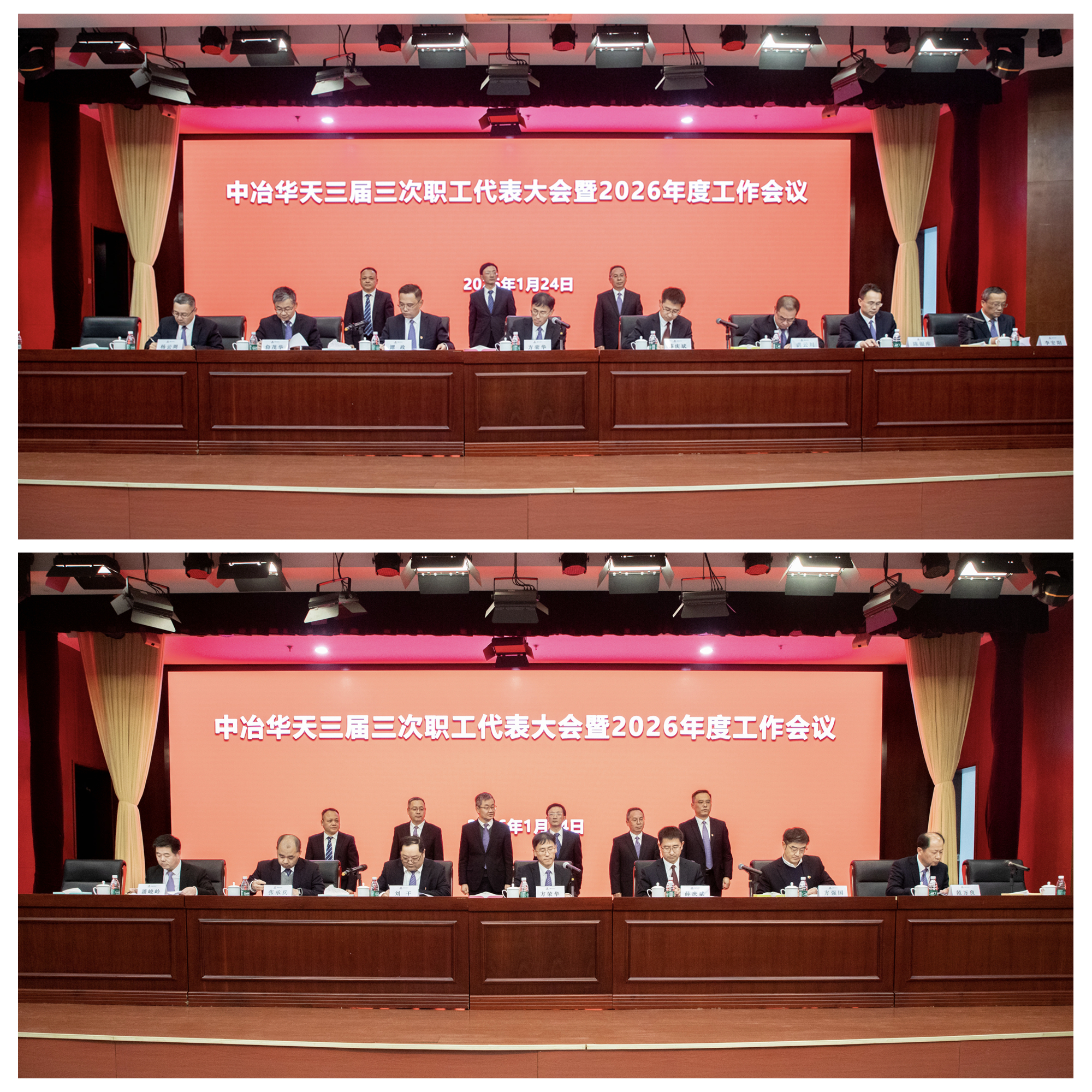1月(yuè)23日至24日,中冶华天召开2026年度工作(zuò)会议暨三届三次职工代表大会,深入(rù)学习贯彻党的二十届历次全会精神(shén),全面落(luò)实(shí)习近平总(zǒng)书记对中央企业工作作出的重要指示精神,认真落实中央经济工作会议精神和集团公司、中国中冶年度工作会议部(bù)署,回顾公司“十四五”及2025年奋斗(dòu)历程,分析研(yán)判形势,部(bù)署“十(shí)五五”及2026年重点(diǎn)任务,号召(zhào)全体干部(bù)职工(gōng)以背水一战的决心、破釜沉舟的勇气、抓铁有痕的劲头,承压突围、奋勇争先,为公司(sī)“十五五”高质(zhì)量发展而团结奋斗(dòu)。公司党委书记(jì)、董事长(zhǎng)方荣华讲话,党委副书(shū)记、总(zǒng)经(jīng)理薛庆斌(bīn)传达学习集团公司、中国中冶2026年度工作会议精神并作年度工作报告,总(zǒng)会计师张(zhāng)光明作财务工作报告,会议由党委副书记夏兴进主持。