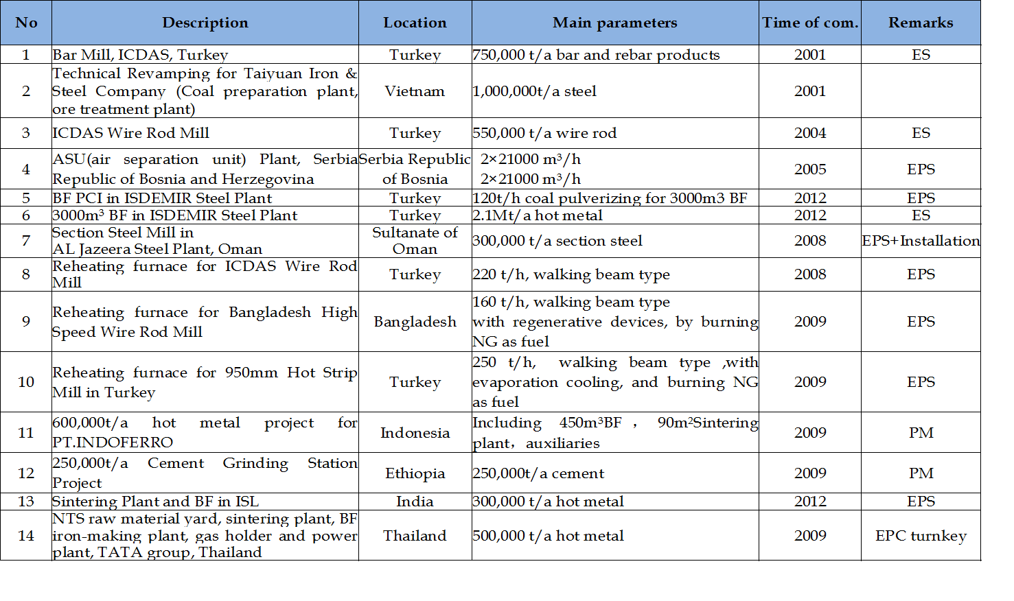 Overseas projects