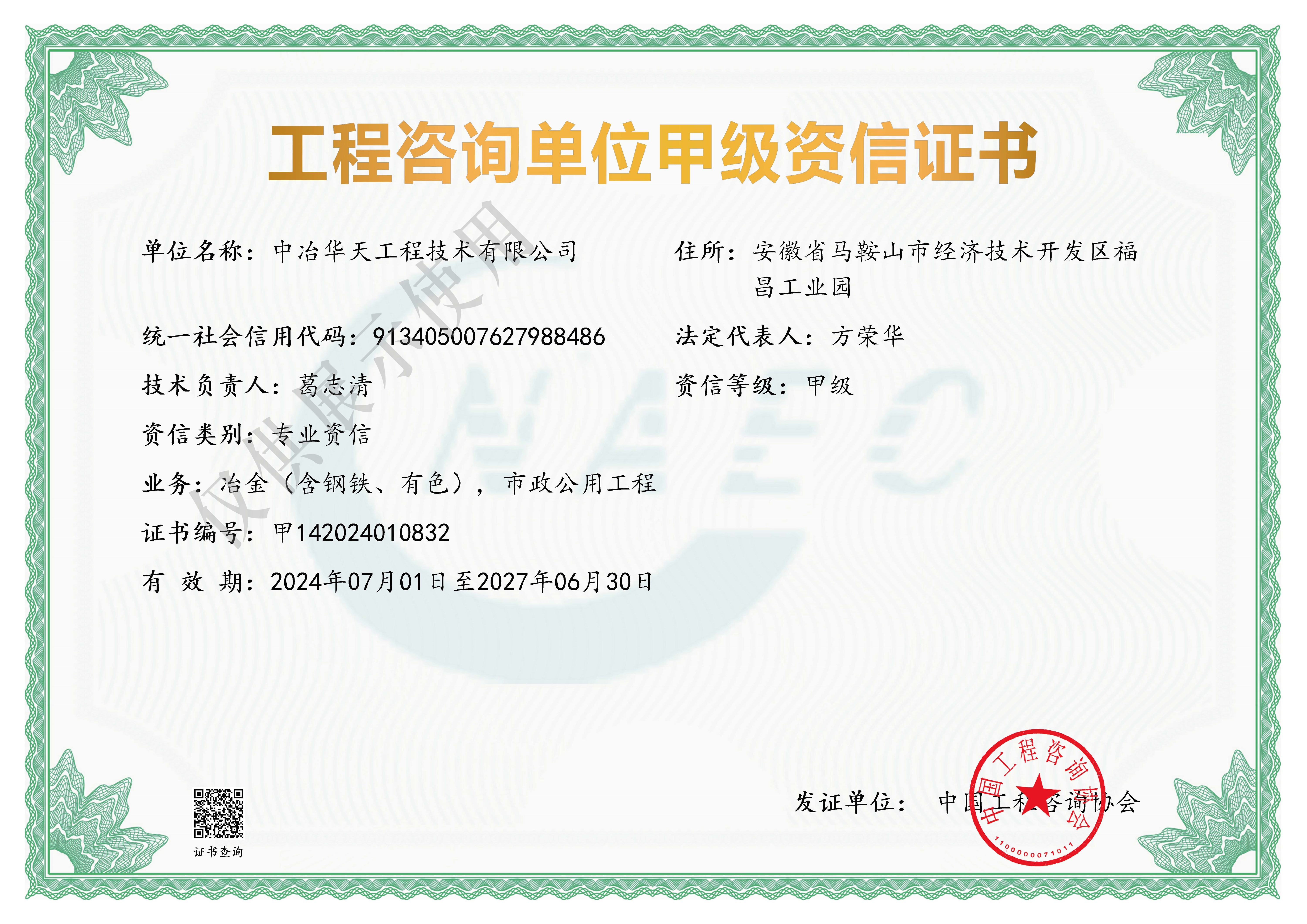 工程咨询单位甲级资信证书